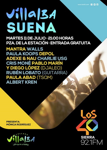 ‘Villalba Suena' ha contado este año con las actuaciones estelares de Mantra, Walls, Paula Koops, DePol, Adexe&Nau, Charlie USG, Cris Moné, Pablo Marín Y Diego Lopez (Djaleo), Rubén Lobato (Guitarrra), Paula Abad (Tsqm) y Albert Kren.