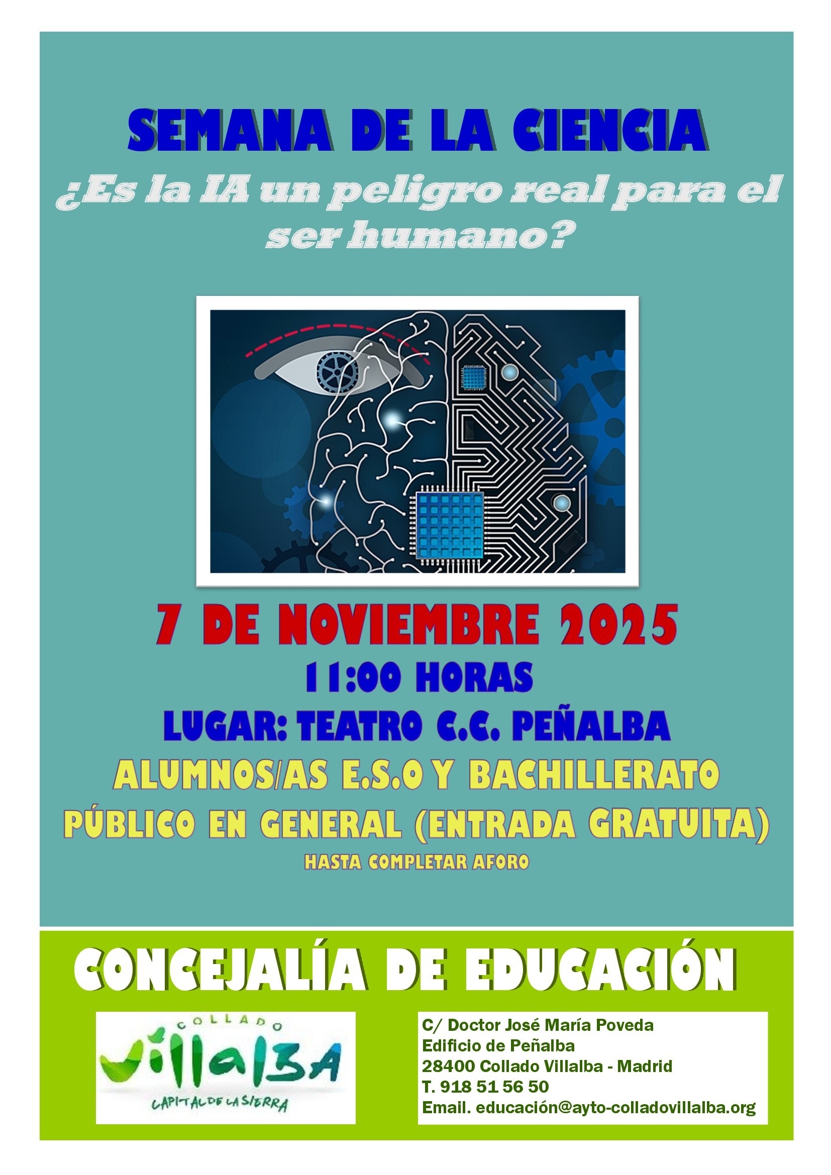 3-11-2025.- El viernes, 7 de noviembre, la Universidad Carlos III de Madrid y el Ayuntamiento de Collado Villalba organizan una mesa redonda sobre Inteligencia Artificial, enmarcada dentro de la Semana de la Ciencia 2025, para escolares de Educación Secundaria, Bachillerato o Grados.