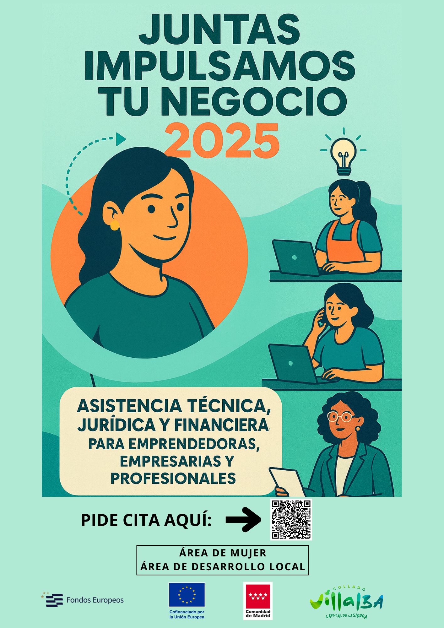 El Ayuntamiento de Collado Villalba pone en marcha la campaña “Juntas impulsamos tu negocio 2025” para fomentar el emprendimiento femenino y apoyar a autónomas, comercios y microempresas del municipio con un servicio gratuito y personalizado de asesoramiento jurídico-fiscal-financiero, formación aplicada en herramientas digitales e IA, y creación de redes profesionales entre participantes.
