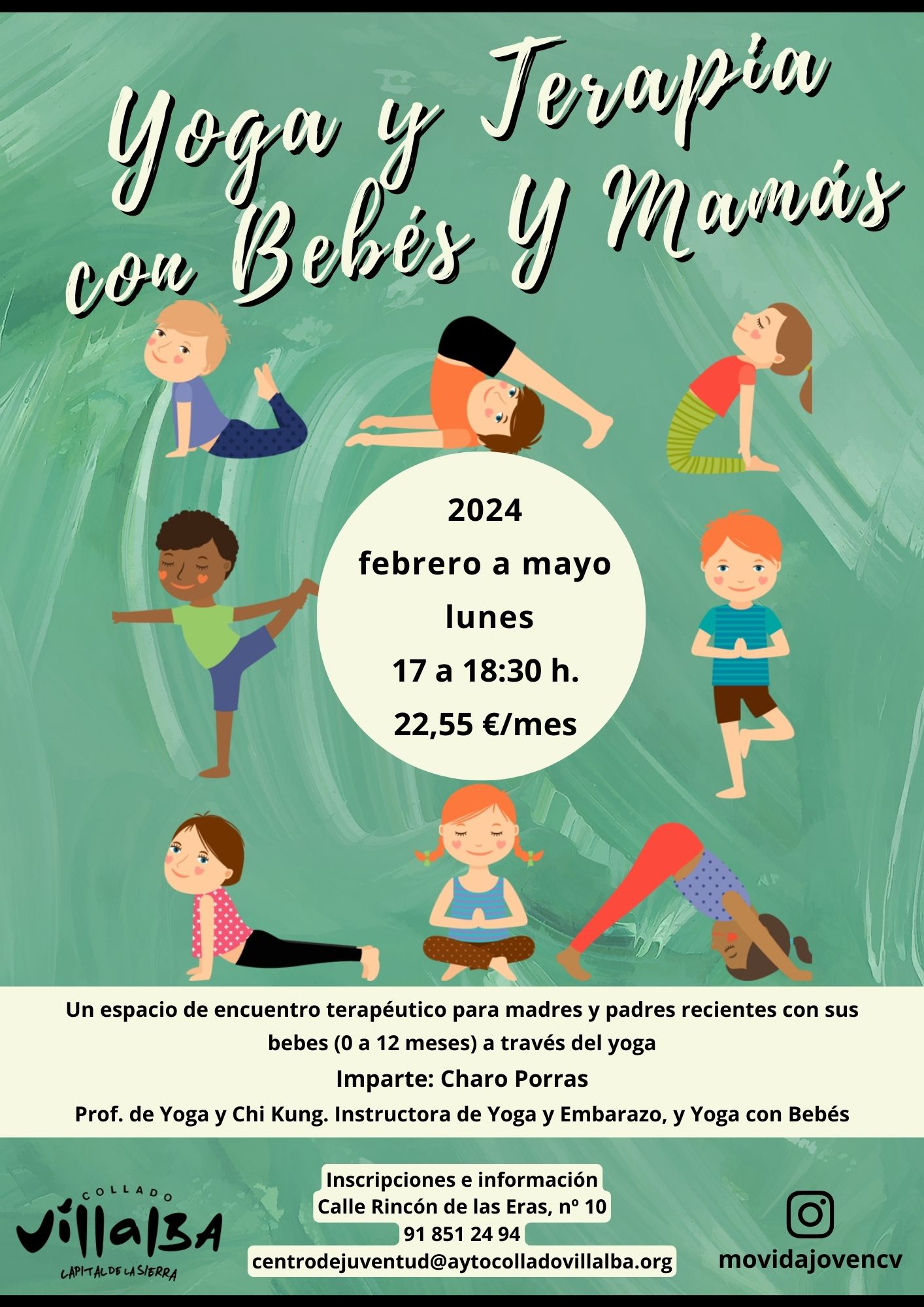 El Centro de Juventud e Infancia de Collado Villalba organiza una nueva edición del Taller de Yoga y Terapia con bebés, que comienza el próximo mes de febrero, en sesiones semanales de 90 minutos, dirigida a los padres y madres de niños desde el primer mes de vida hasta un año de edad.