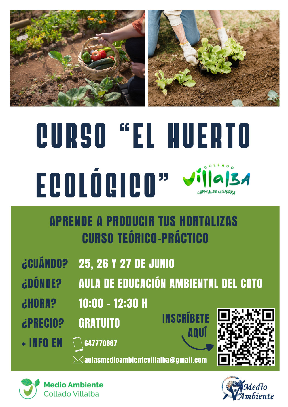 Curso Teórico Práctico 'Aprende a producir tus propias hortalizas' Fecha 21 junio 2024 En el Aula de Educación Ambiental de El Coto De 10:00 h. a 12:30 h. Gratuito Más información: 647 770 887 Inscríbete aquí