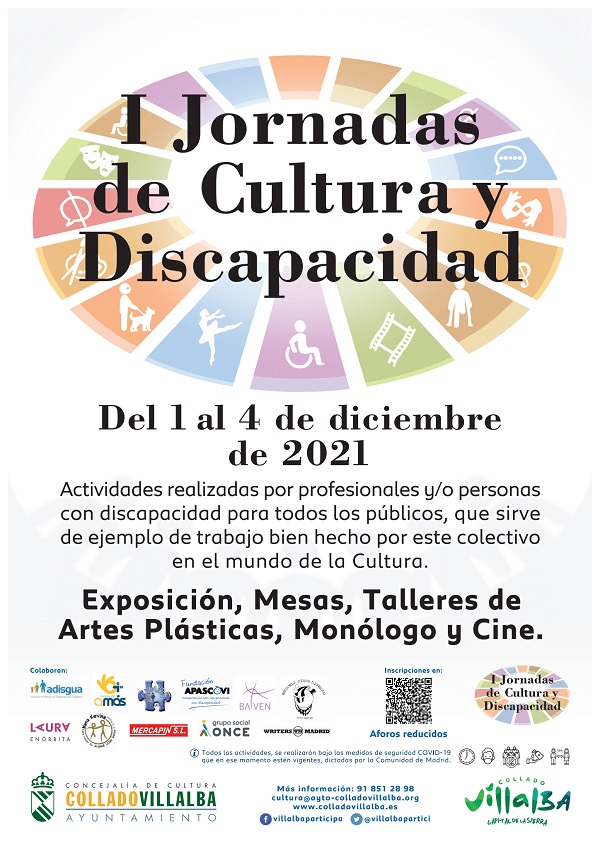 La Concejalía de Cultura del Ayuntamiento de Collado Villalba ha puesto en marcha las I Jornadas de Cultura y Discapacidad, que se desarrollarán del 1 al 4 de diciembre con diversas propuestas, como talleres de artes plásticas, mesas, exposiciones, monólogos y cine.