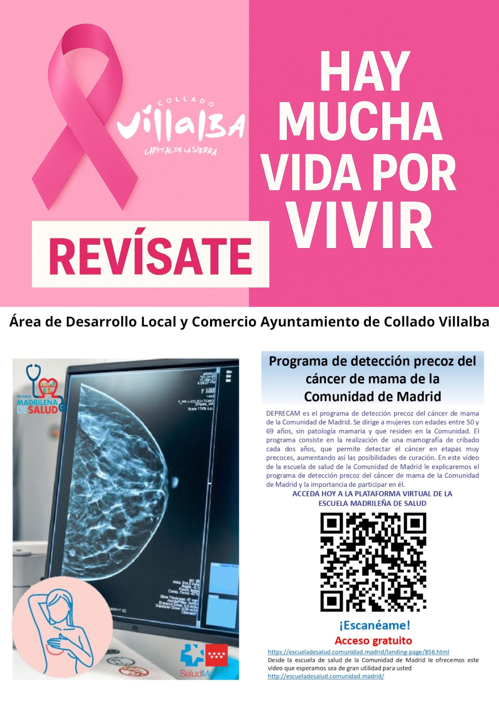 Junto a las actividades anteriores, el Ayuntamiento de Collado Villalba, pone en marcha en 2025 una nueva edición de la campaña “Red de Comercios en Lucha Contra el Cáncer de Mama”, una iniciativa del área de Empleo y Desarrollo Local que, por tercer año consecutivo, busca concienciar a la ciudadanía sobre la importancia de la prevención y la detección precoz de esta enfermedad.
