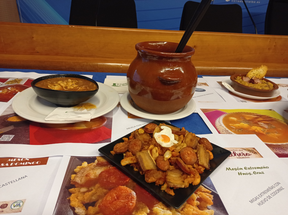 Carrillera de ternera gallega, judías de barco de Ávila con orejas del nity, magro de cerdo estofado en salsa de rabo de toro, cocido montañés, verdinas con almejas y rape, potaje de vigilia, fabada asturiana, sopa castellana, judiones de la granja con matanza, lentejas caviar con chipirones en su tinta, arroz caldoso de mariscos, migas extremeñas con huevo de codorniz, cazuela de arvejas con toque ahumado, alubias rojas con costillas de cerdo ibérico, judiones zamoranos con matanza, blanquillos, sopa harira o fabes con jabalí, son algunas de las propuestas que se han elaborado desde los mejores restaurantes de Collado Villalba para que sean degustados por los comensales en los establecimientos participantes. Todos ellos con la cuchara y puchero como teme central.