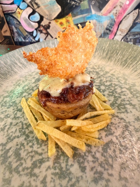 En segundo lugar, ha quedado el Restaurante El Raso, con su tapa “Patata baby rellena de rabo de toro con fior di latte y piruleta de parmesano”,
