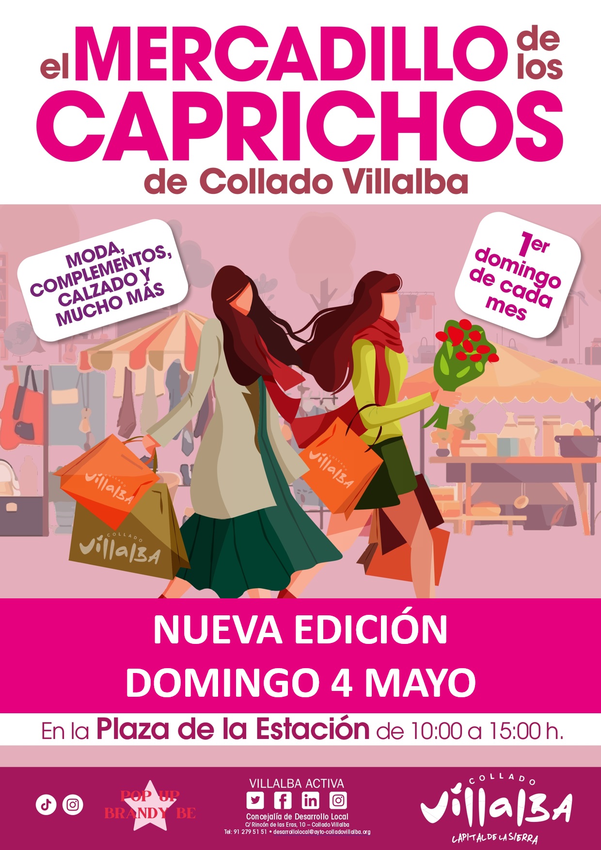 30-4-2025.- Este domingo, 4 de mayo, vuelve a Collado Villalba el Mercadillo de Los Caprichos, que tendrá lugar en la Plaza de la Estación y ofrecerá a vecinos y visitantes una cuidada selección de moda, complementos, vestidos, blusas, pantalones, prendas de estilo ‘boho’, artesanía, calzado y joyas, entre otros muchos productos.