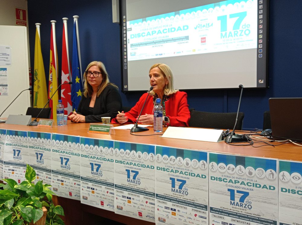 La alcaldesa de Collado Villalba, Mariola Vargas, y la subdirectora general de Fomento del Empleo de la Comunidad de Madrid, Ana Belén García Martínez, han presidido esta mañana en el Centro de Iniciativas Municipales la inauguración de la II Feria de Empleo por la Discapacidad, organizada por el área de Empleo, Formación y Empresas del Ayuntamiento del Collado Villalba, en colaboración con la Dirección General del Servicio Público de Empleo de la Comunidad de Madrid.