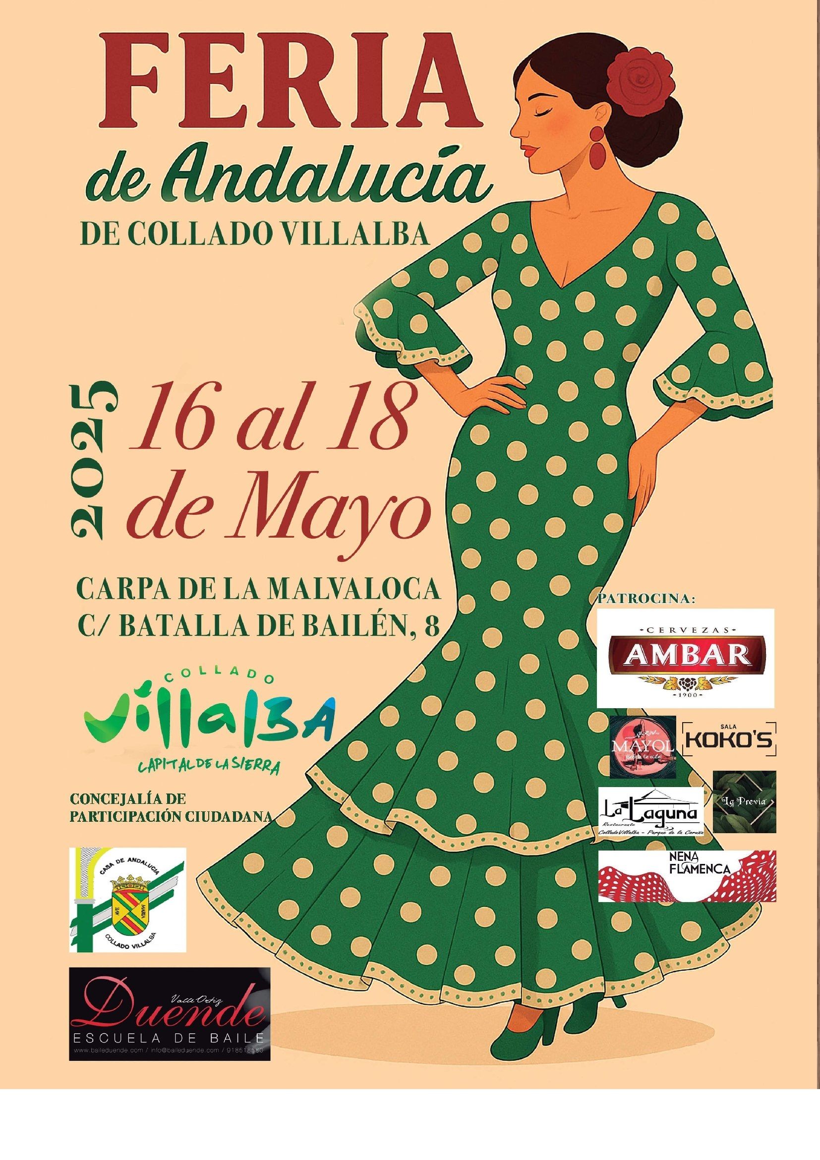 14-5-2025.-  Desde el viernes 16 al domingo 18 de mayo, el Ayuntamiento de Collado Villalba, en colaboración con la Casa Regional de Andalucía de la localidad, celebrarán en la Carpa de Malvaloca la Feria de Andalucía 2025, con entrada gratuita y multitud de actuaciones.