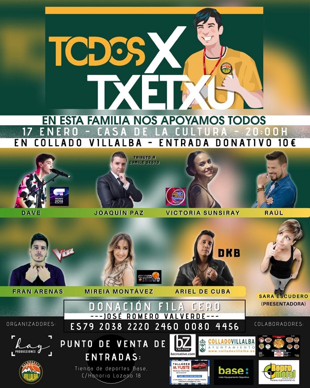 El próximo 17 de enero, a partir de las 20 horas, la Casa de Cultura de Collado Villalba acoge el concierto solidario "Todos por Txetxu", (José Romero Valverde) jugador del equipo cadete del Club Baloncesto Villalba, que el pasado 9 de junio sufrió un daño cerebral.