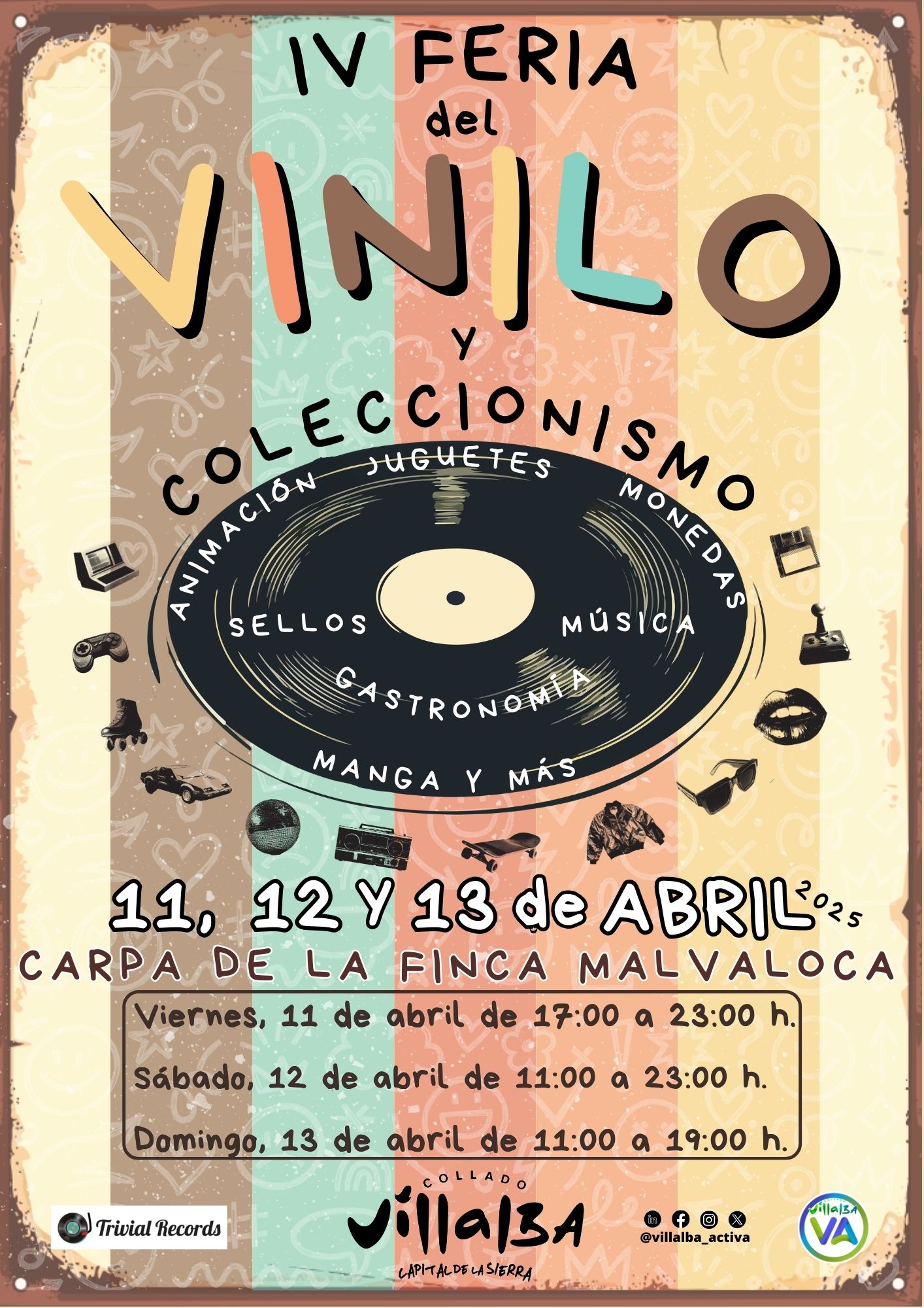 8-4-2025.- La Carpa Malvaloca acoge este fin de semana, del 11 al 13 de abril, la cuarta edición de la Feria del Disco de Vinilo y Coleccionismo, organizada por el Ayuntamiento de Collado Villalba, desde el Área de Desarrollo Local, con el fin de mejorar la promoción comercial y turística de la ciudad.