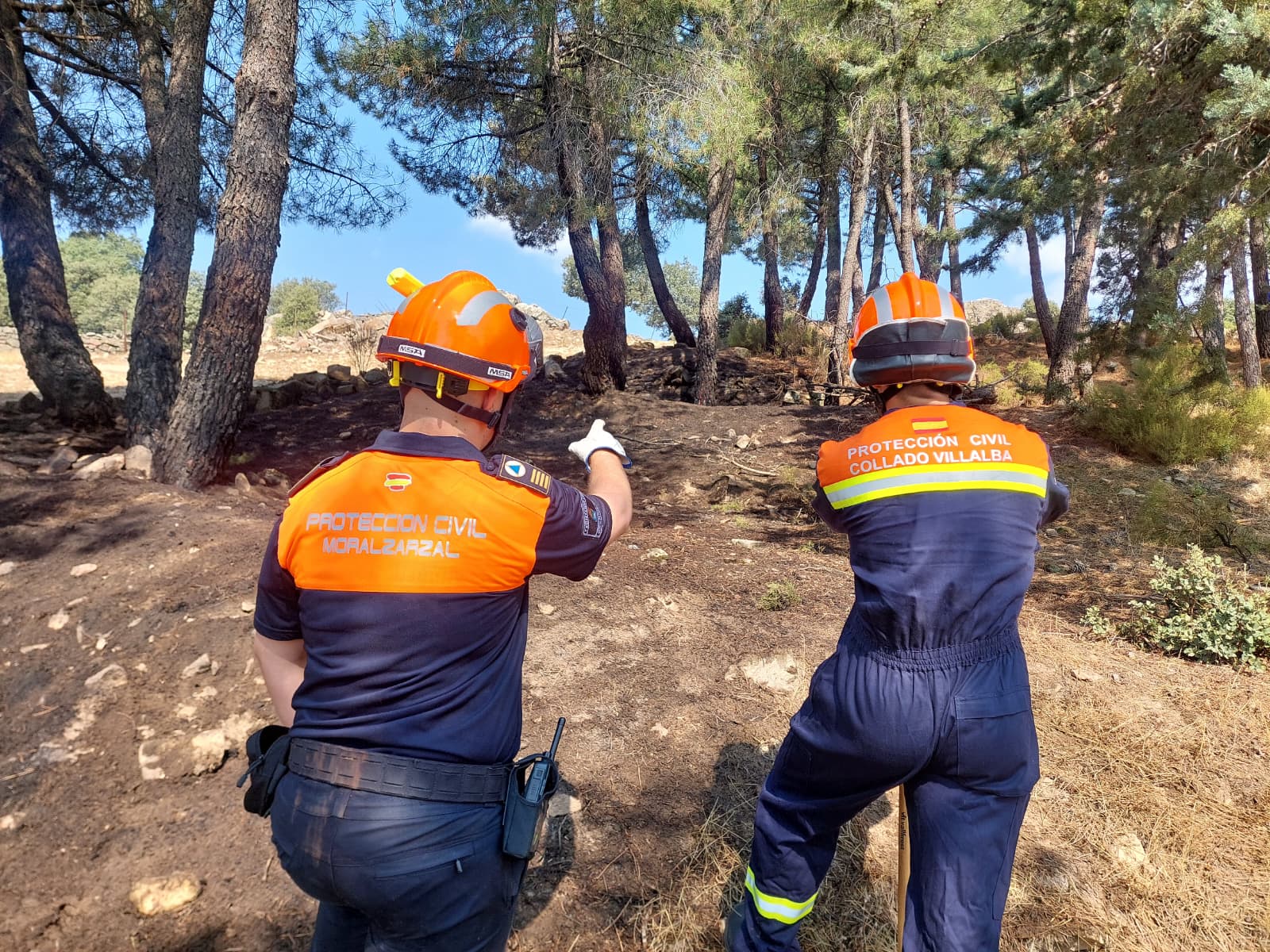 20-8-2025.- Protección Civil de Collado Villalba ha intervenido en un incendio declarado esta mañana, sobre la 10 h., próximo a la fuente del Cornocal en el Cerro el Telégrafo, entre los términos de Morzalzarzal y Collado Villalba.