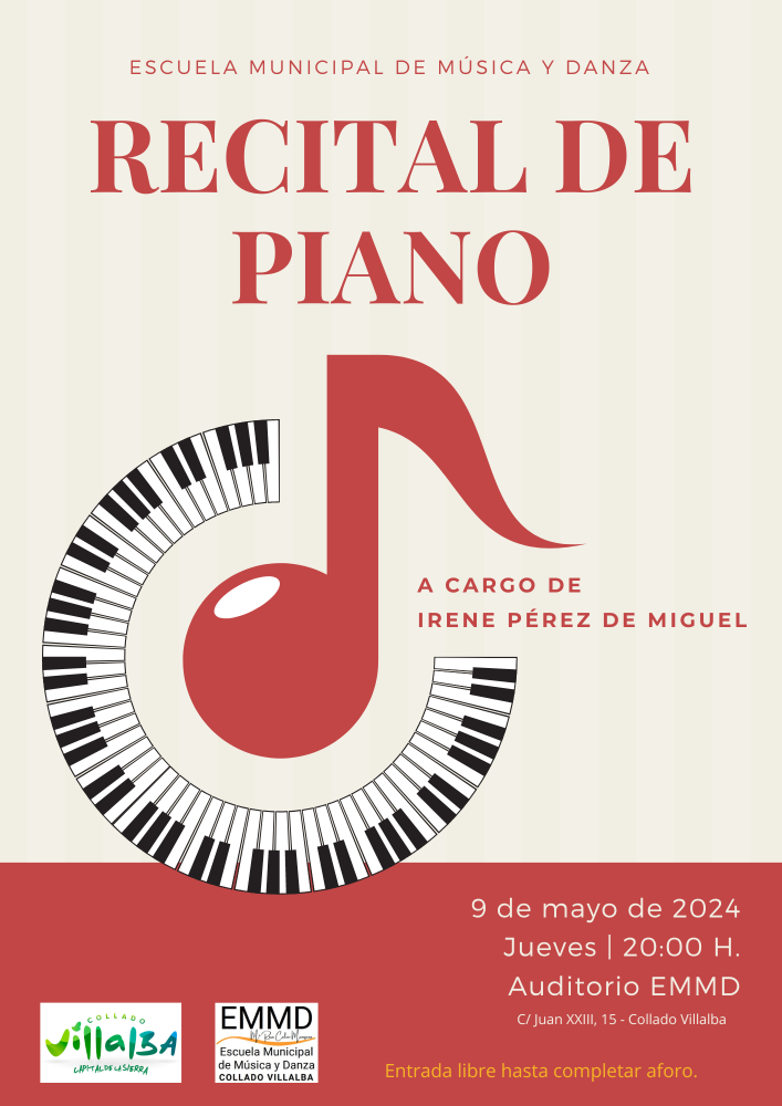 Concierto extraordinario de la Escuela de Música a cargo de la pianista villalbina Irene Pérez de Miguel, que ofrecerá un recital de piano previo a su examen fin de carrera en el Real Conservatorio Superior de Música de Madrid.