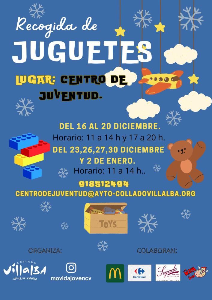 La Concejalía de Infancia y Juventud del Ayuntamiento de Collado Villalba ha organizado una recogida de juguetes solidaria, que se desarrollará del 16 de diciembre al 2 de enero en el Centro de Juventud.