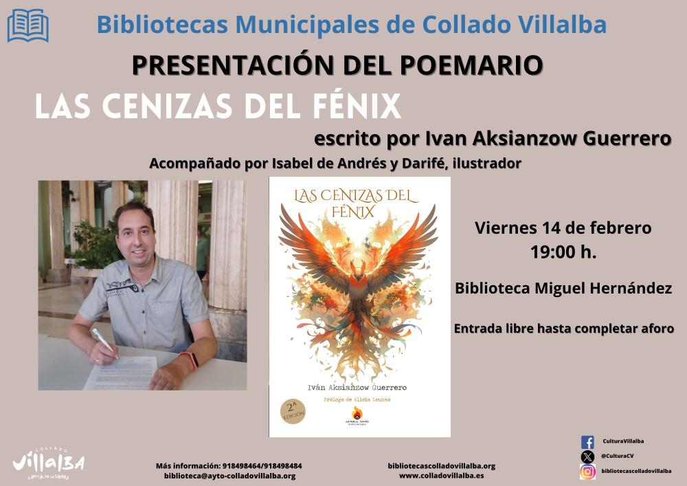 Presentación del poemario "Las cenizas del Fénix" escrito por Ivan Aksianzow Guerrero, estará acompañado por Isabel de Andrés y Darifé, ilustrador.
