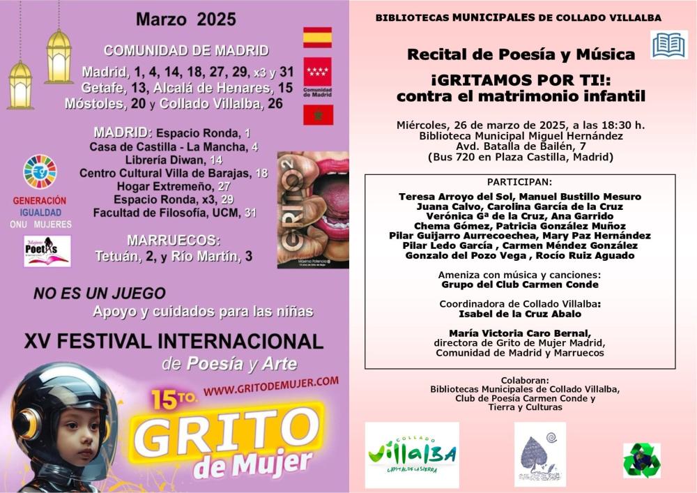 Recital de poesía y música. ¡GRITAMOS POR TI!: contra el matrimonio infantil