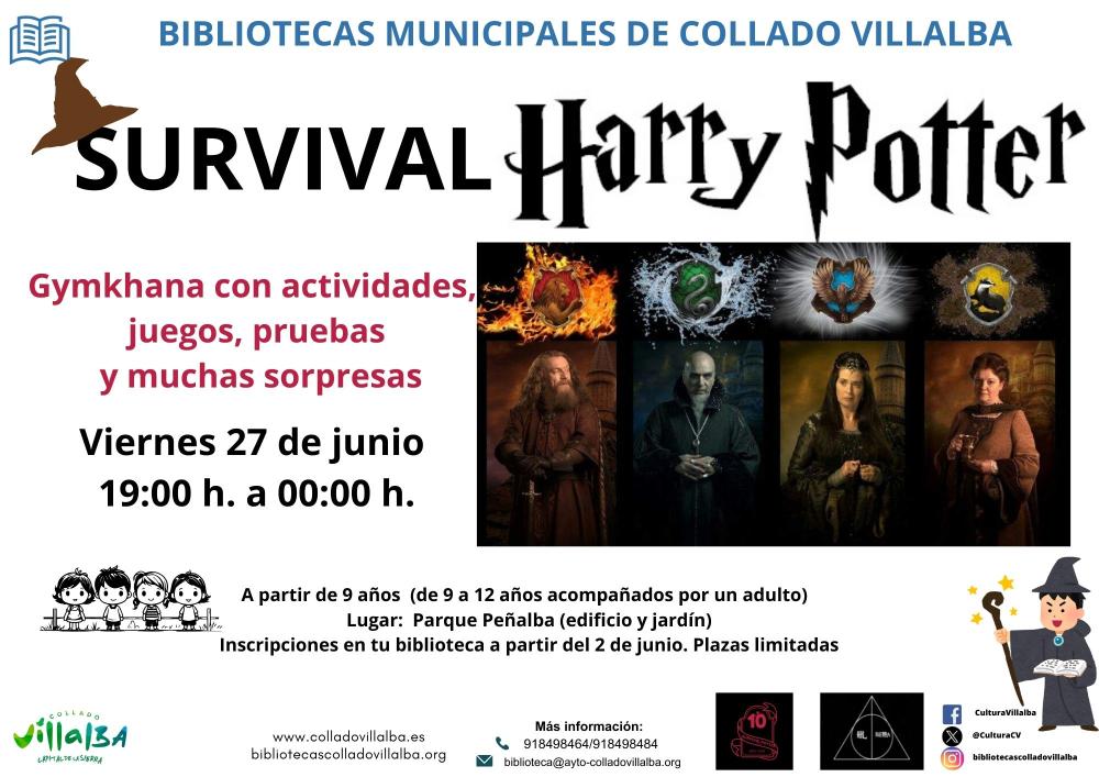 Survival Potter, gymkhana donde se llevarán a cabo diversas actividades, juegos, pruebas y muchas sorpresas relacionadas con los libros de Harry Potter Donde por equipos y en diferentes localizaciones del municipio se realizarán diferentes pruebas propuestas por los monitores.