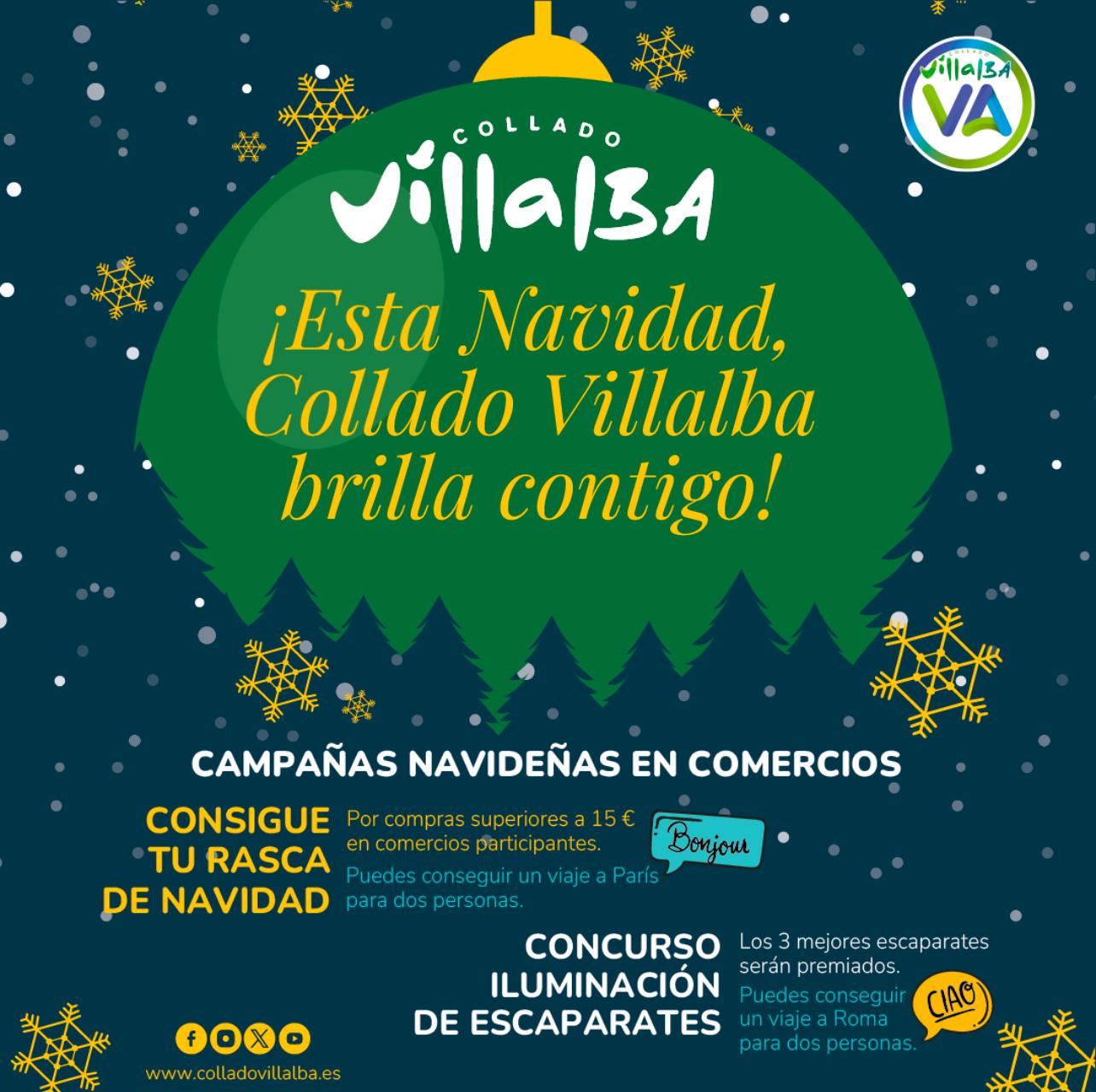 10-12-2024.- El Ayuntamiento de Collado Villalba, desde el Área de Desarrollo Local, ha puesto en marcha nuevas campañas dirigidas a la promoción del comercio local de proximidad durante estas fechas. “Lúcete en Navidad” y “El Rasca de la Navidad”, dos iniciativas para apoyar y visibilizar el amplio y variado comercio local, aprovechando la campaña navideña en la que vecinos y visitantes podrán realizar todas sus compras en la propia localidad, y podrán obtener grandes premios, como viajes a Roma y a París o una estancia en Paradores, para dos personas.