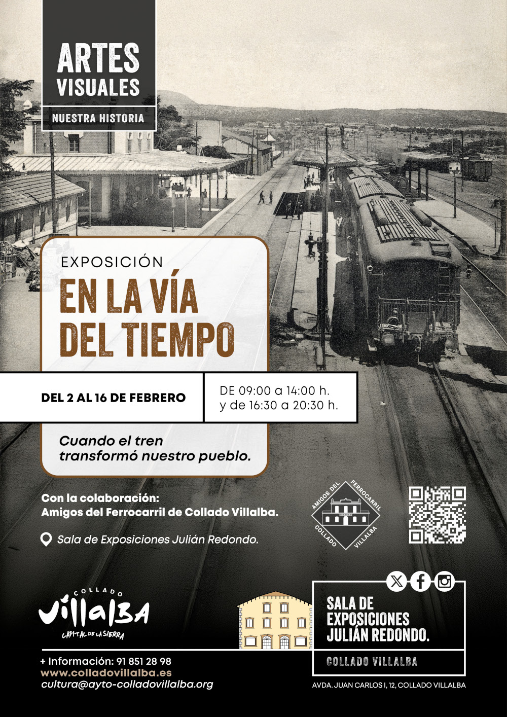 La Concejalía de Cultura del Ayuntamiento de Collado Villalba, en colaboración con la Asociación de Amigos del Ferrocarril de Villalba (AAFC), organiza la exposición “En la vía del tiempo: cuando el tren transformó nuestro pueblo”, una muestra que forma parte de la programación de las Semanas Ferroviarias de Villalba 2026.