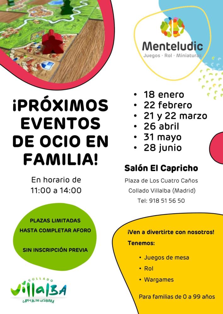 El área de Educación del Ayuntamiento de Collado Villalba organiza una nueva edición del Programa de Ocio en Familia ‘Menteludic Kids’, un espacio de diversión para familias con niños que se celebrará este domingo, 22 de febrero, en el Salón El Capricho.
