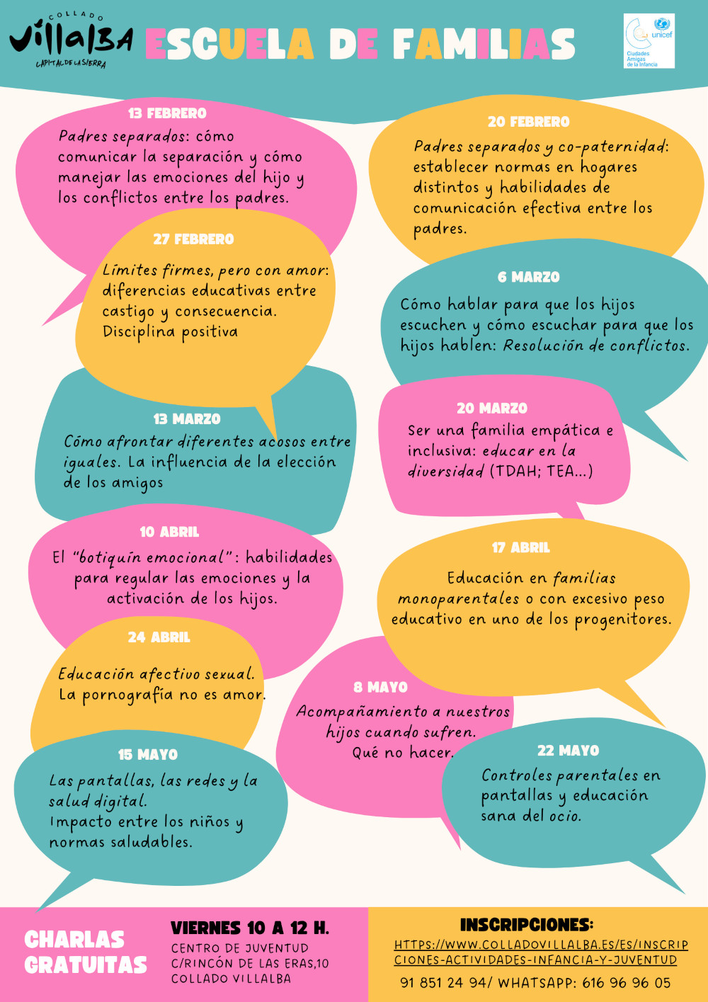 📌 Actividad gratuita. Dirigida a familias con hijos menores 📍 Centro de Juventud C/Rincón de las Eras 10, Collado Villalba (Madrid) Viernes de 10 a 12 horas