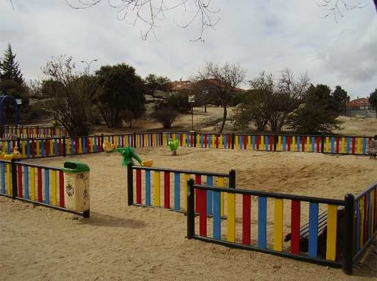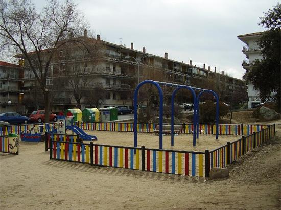 Zona situada en el centro de la Urbanización Parque de la Coruña sobre un solar con las características comunes de la zona: sobre el irregular suelo granítico vegetación autóctona salpicada de encinas y pinos con posterior plantación de algún ejemplar de prunus y olmo pumila.